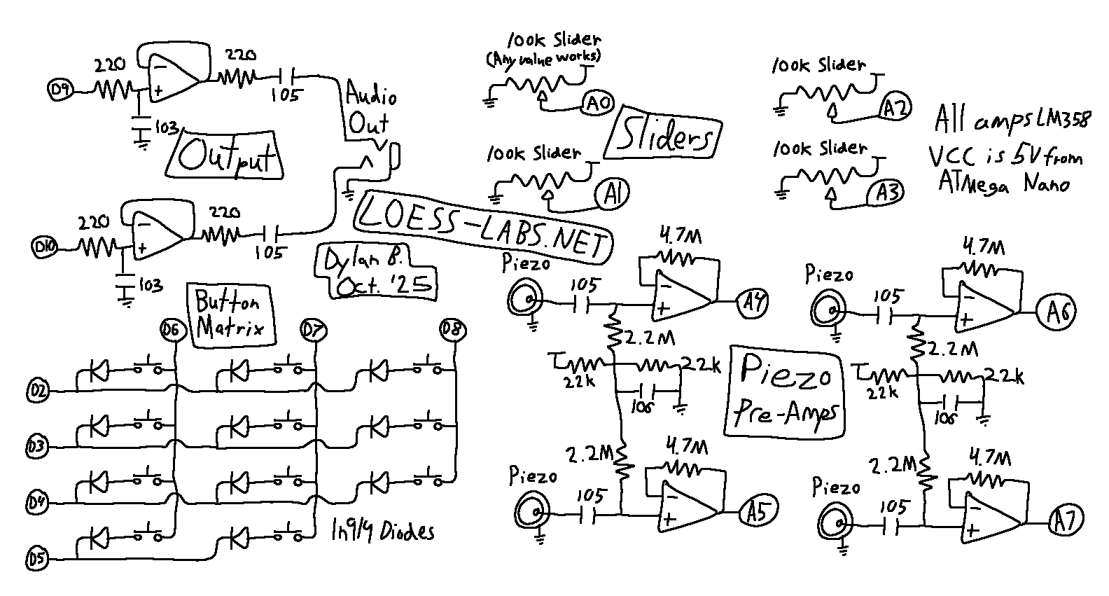 This is a piezo-based touch synthesizer that's based around an ATmega328P nano board.
